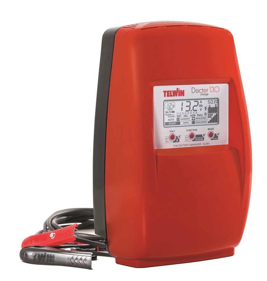 Microprocesorová pulsní nabíječka Doctor Charge 130 Telwin,12-24 V s funkcí desulfatizace autobaterie, diagnostikuje baterie, nabíjí automaticky všechny druhy autobaterií, udržuje stálou kapacitu, pomoc při startování.