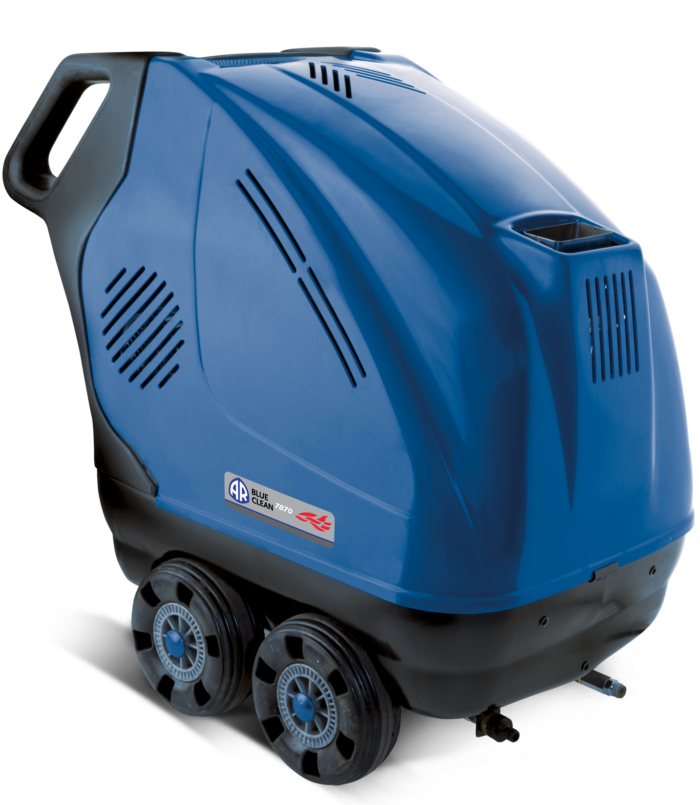 Profi tlaková myčka s ohřevem vody HeavyPro 7870N Annovi Reverberi, lineární čerpadlo, výkon max. 900 l/hod, pracovní tlak 200 bar, nastavitelný ohřev na max. 140°C, regulace tlaku a průtoku, nerezový boiler, napájení 400 V, záruka 2 roky i pro firmy. Ocelový rám podvozku.