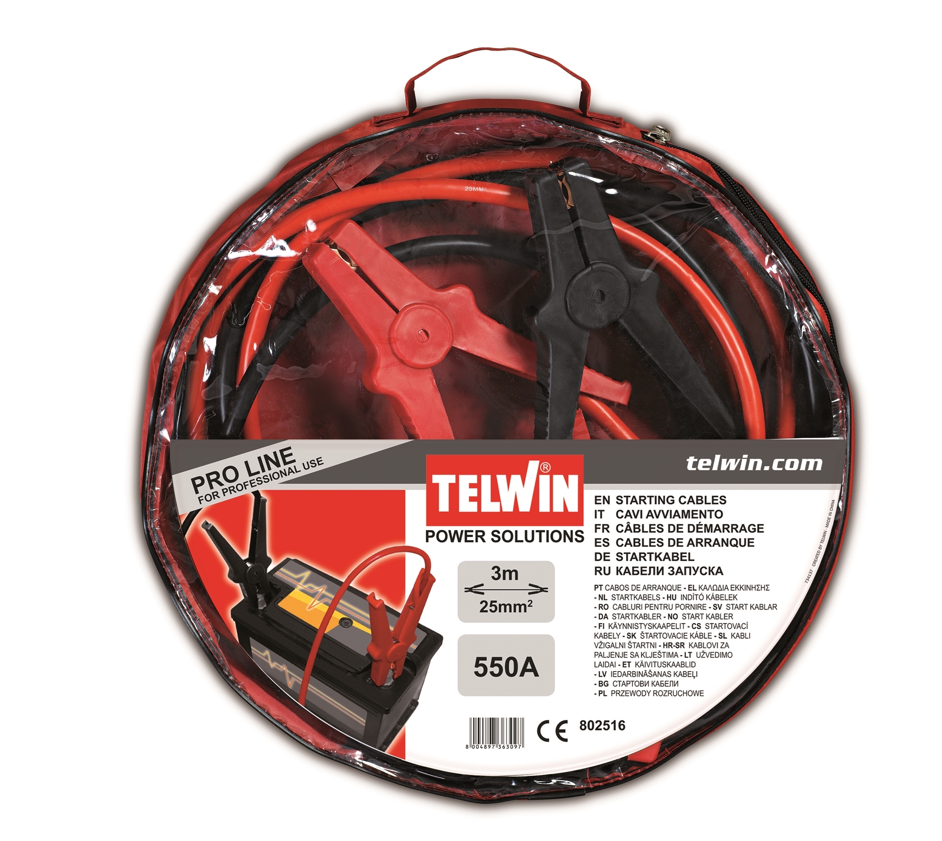 Startovací kabely 550 A Telwin pro nouzové nastartování, délka 3 m