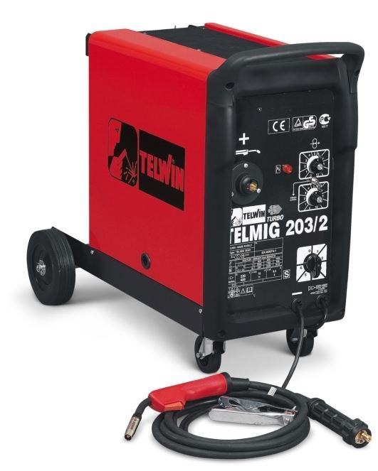Dílenská profesionální svářečka MIG MAG Telmig 203/2 Telwin s bodovací automatikou, 3x400 V, (možnost 3x230 V) 200 A, 6 stupňů regulace proudu, pro profi dílny, Made in Italy. Svářečka pro profesionální dílny, karosářské opravny. Ideální svářečka pro údržbářskou dílnu. V základní výbavě hořák s Euro koncovkou, redukční ventil, svařovací drát.