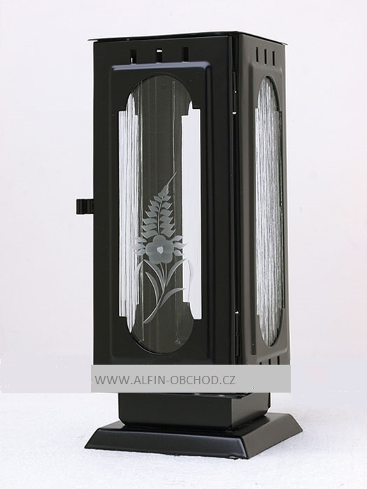 Svítilna na pomník, uchycení hmoždinkou. Náhrobní svítilna s ozdobným výstřihem.