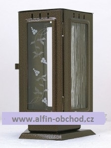 Svítilna na postavení, lichoběžníkový tvar, uchycení na pomník hmoždinkou, barva starozlato