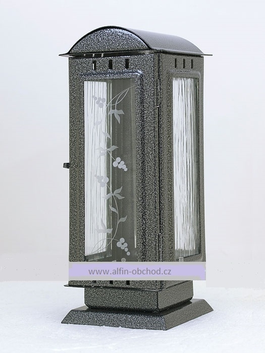 Svítilna na postavení na pomník, výstřih ovál, uchycení hmoždinkou , barevné varianty: černá-straro-zlatá-starostříbrná-staroměď rozměr 100x100x260 mm