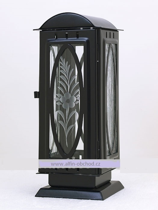 Svítilna na postavení na pomník, výstřih ovál, uchycení hmoždinkou , barevné varianty: černá-straro-zlatá-starostříbrná-staroměď rozměr 100x100x260 mm