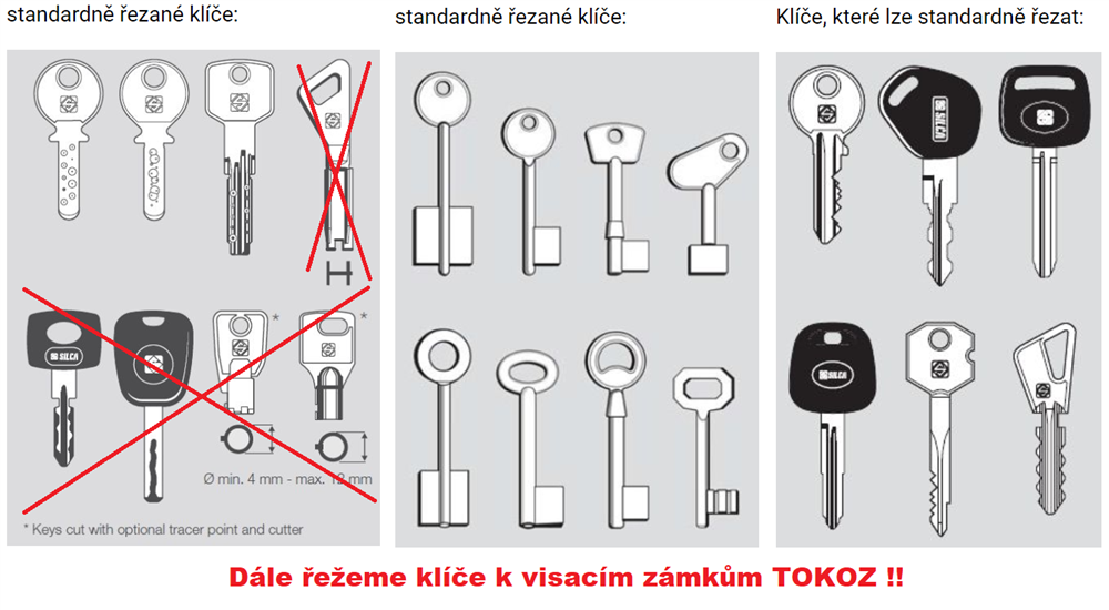 Vyobrazení klíčů, které vyrábíme: