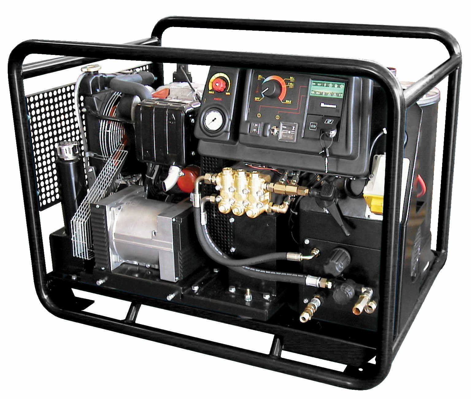 Vysokotlaká myčka s ohřevem vody s naftovým motorem Clark Hot 17 Fasa výkon 1320 l/hod, max. tlak 200 bar, nastavitelný ohřev na max. 110°C.